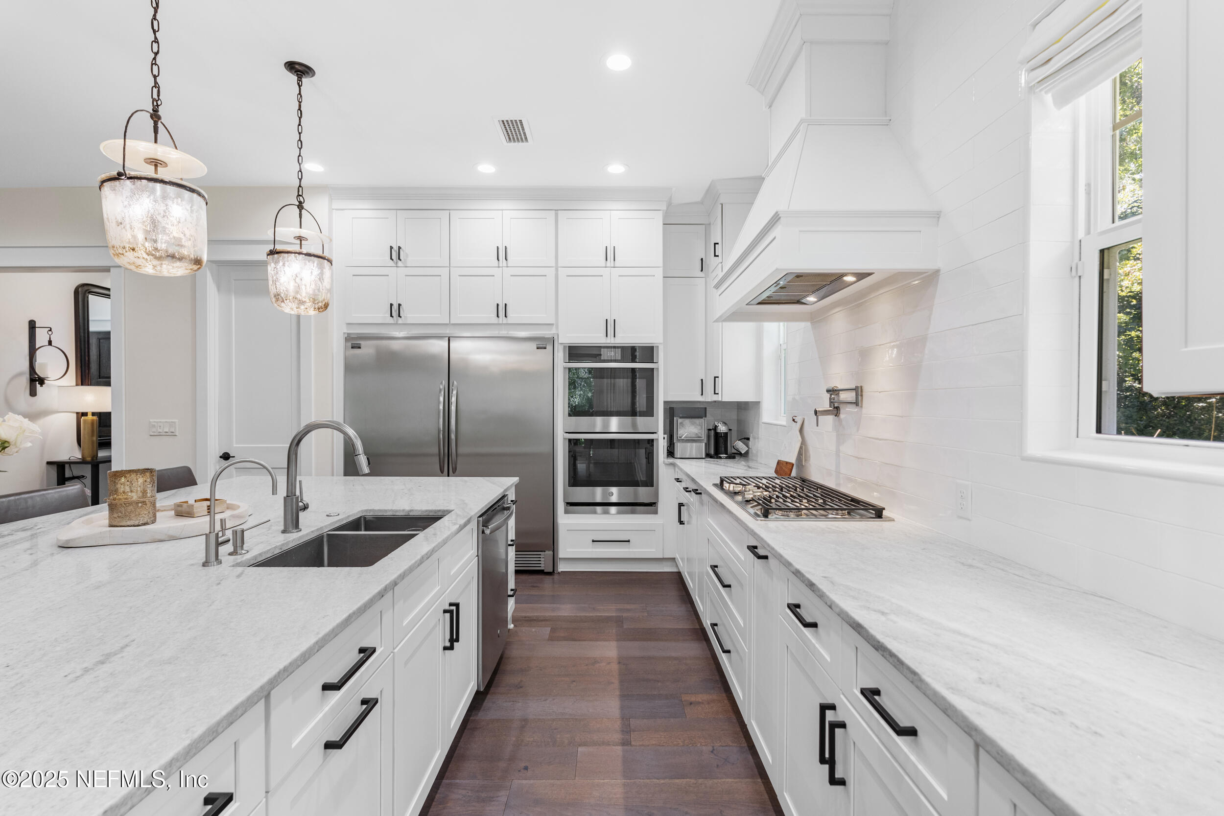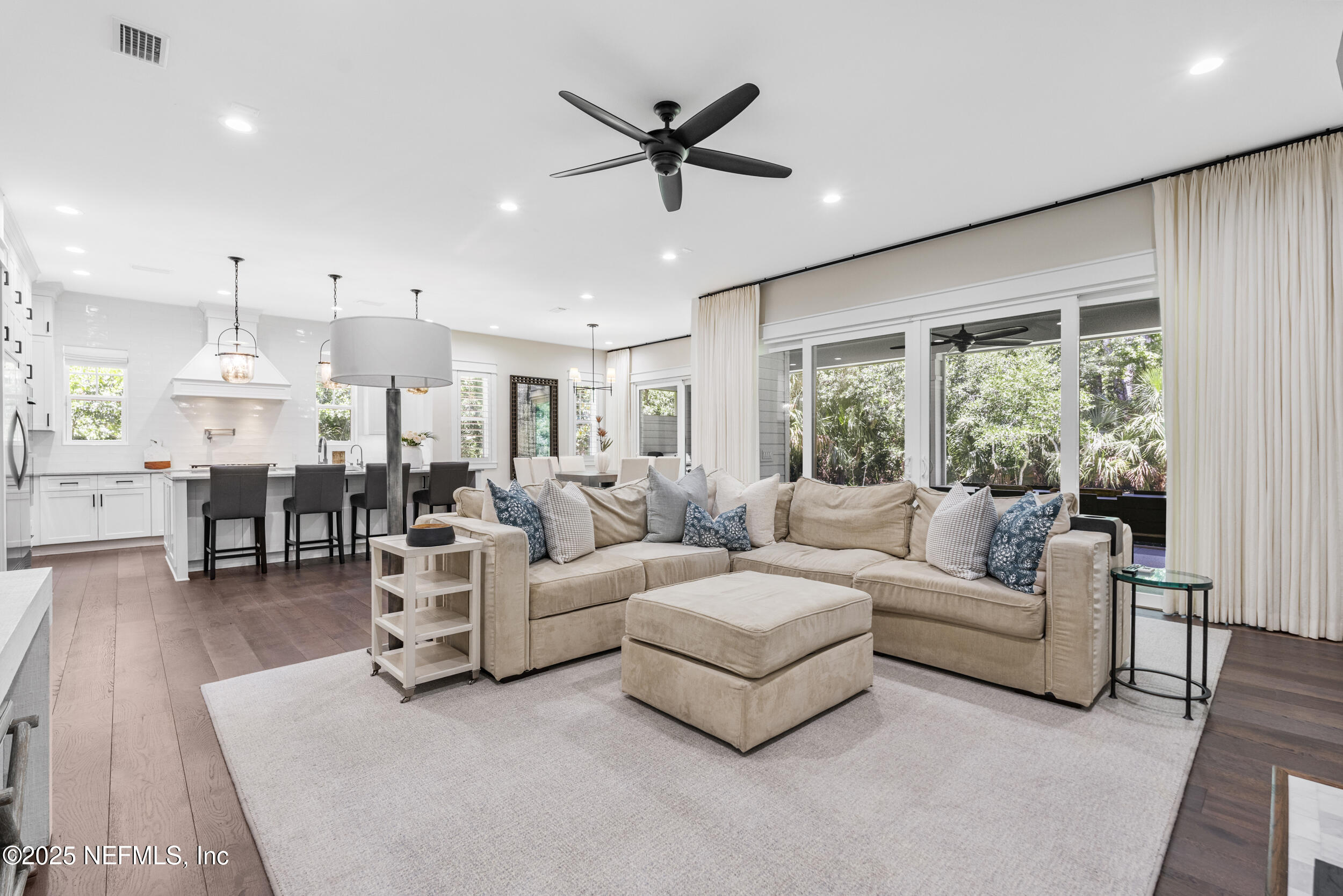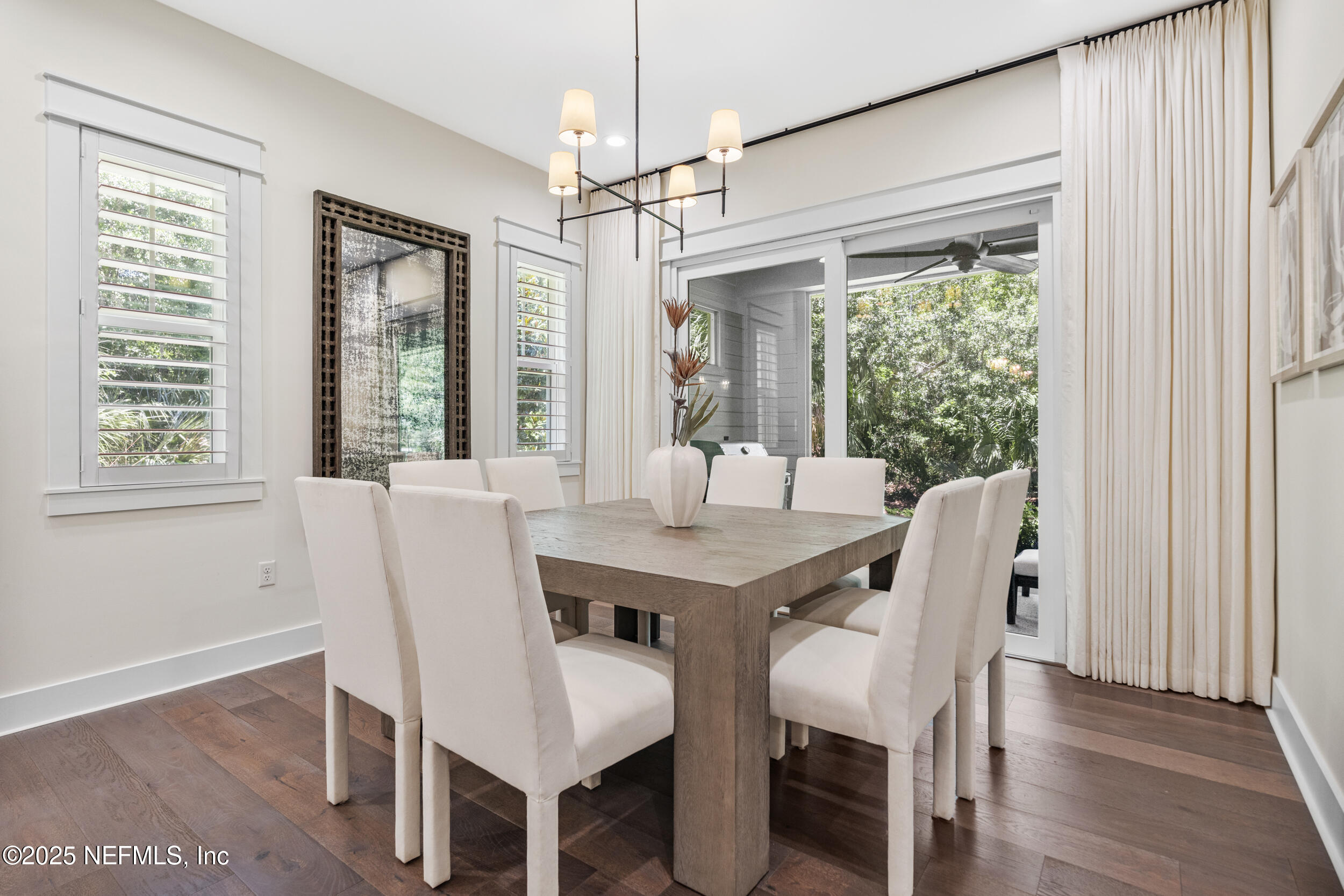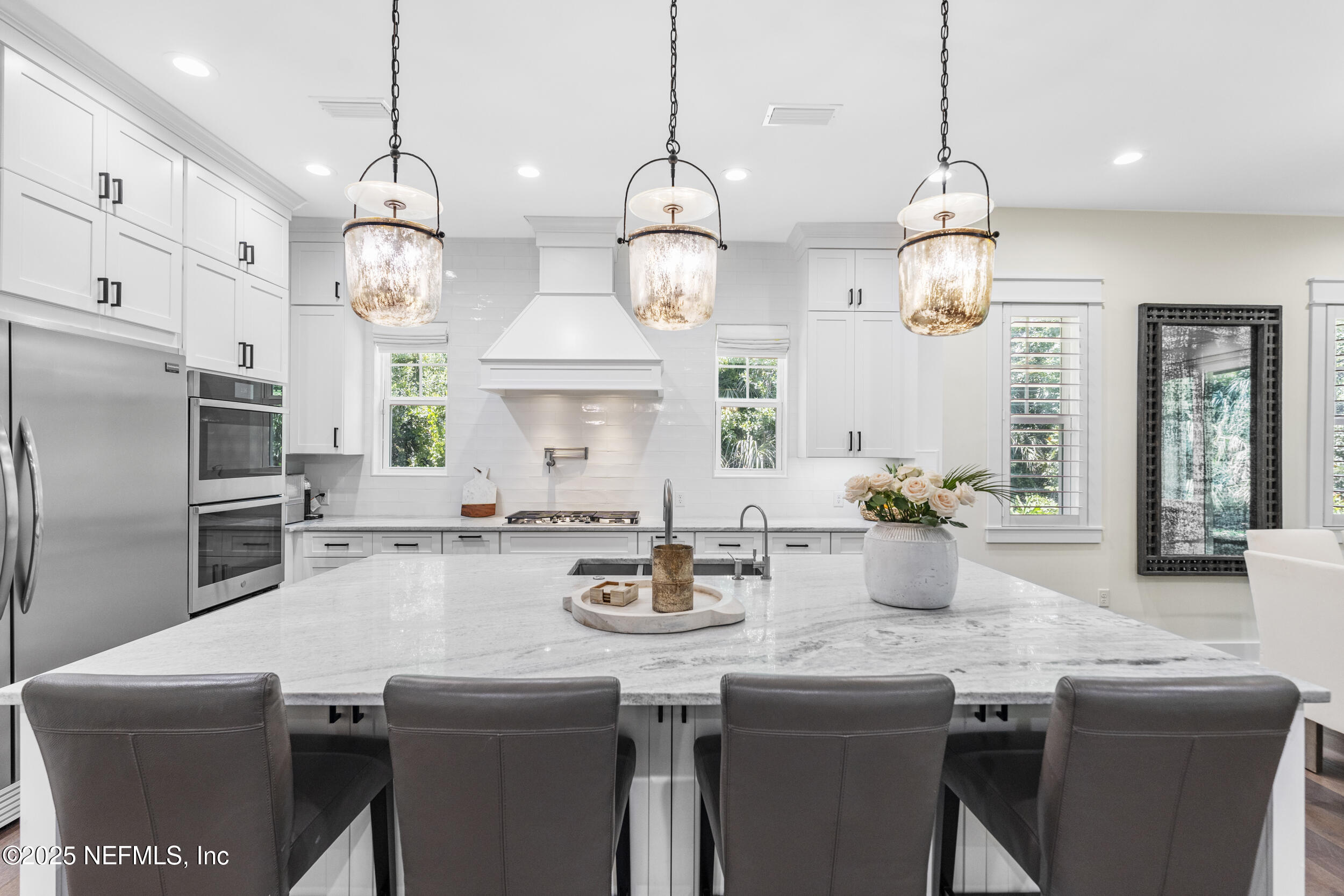 A rare blend of modern luxury and timeless design, this custom home in the private gated enclave of Ponte Vedra Pointe offers the ultimate in coastal living. Situated in the heart of Ponte Vedra Beach, this turnkey residence is just minutes from the beach, A+ rated Ponte Vedra schools, waterfront dining, TPC Golf Course in Sawgrass, boutique shopping, Mickler's Beach, and the vibrant Nocatee Town Center. Designed with both elegance and function in mind, the 5-bedroom, 4.5-bath layout features an expanded floor plan with ensuite bathrooms for four bedrooms--ideal for comfort and privacy. The spacious primary suite is conveniently located on the first floor, along with an additional downstairs office or guest bedroom featuring its own private bath--perfect for hosting visitors or working from home. At the heart of the home is a gourmet kitchen equipped with a gas cooktop, beautiful island and soft-close cabinetry, Beautiful hardwood floors, designer finishes, a custom glass-enclosed wine wall, and California Closets throughout elevate the home's sophisticated aesthetic.